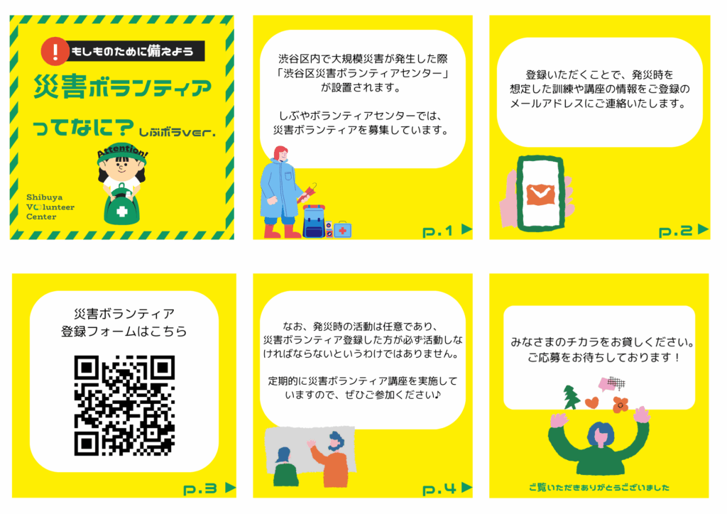 区内で大規模災害が発生した際「渋谷区災害ボランティアセンター」が設置されます。