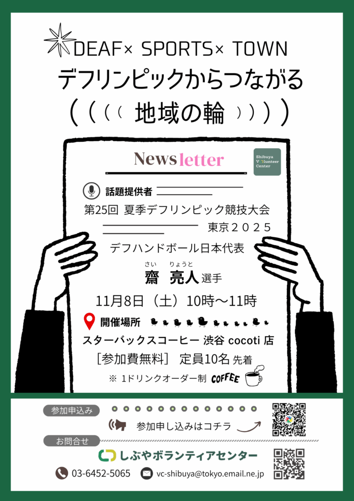 「第25回夏季デフリンピック競技大会 東京2025」 デフハンドボール日本代表 齋 亮人さんをお招きし、デフリンピックやデフハンドボールについて、ボランティアとしてどのような関わりができるのか、お話を伺います。