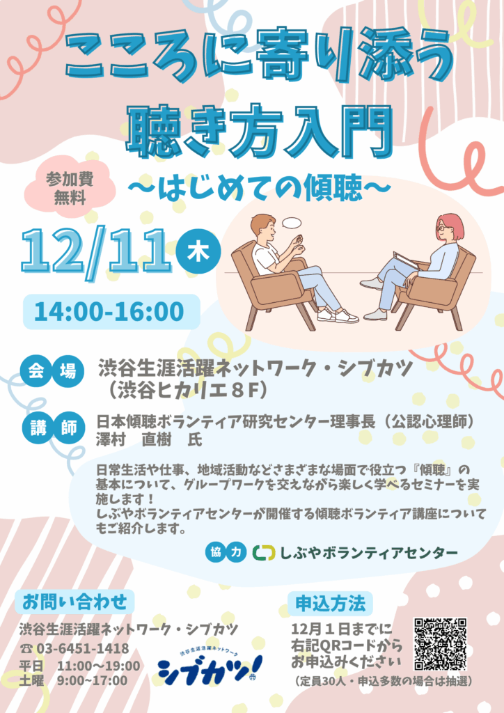 渋谷生涯活躍ネットワーク・シブカツ主催ボランティアセミナーのお知らせ