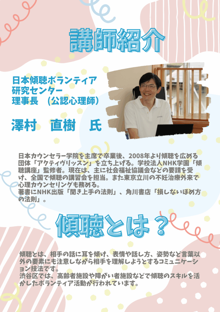 講師:公認心理師 アクティブリッスン代表 日本傾聴ボランティア研究センター理事長
