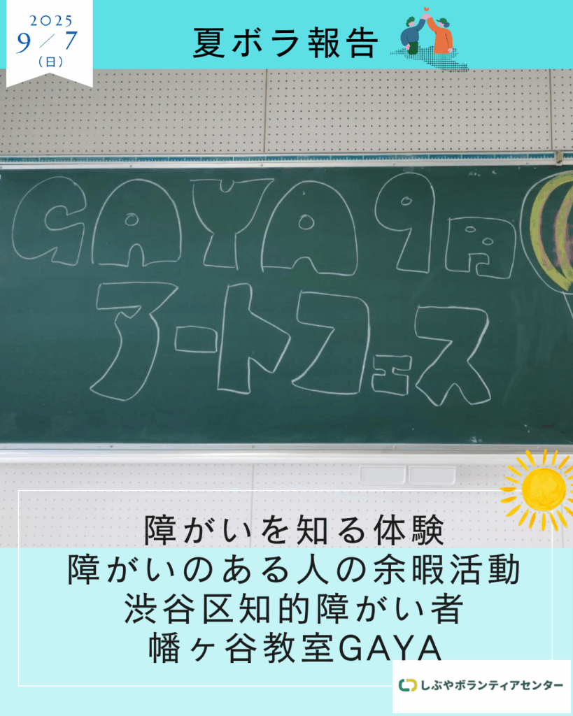 9月7日夏・体験ボランティア 障がいを知る体験 障がいのある人の余暇支援 谷区知的障がい者幡ヶ谷教室GAYAでの体験ボランティアへ見学に伺いました。