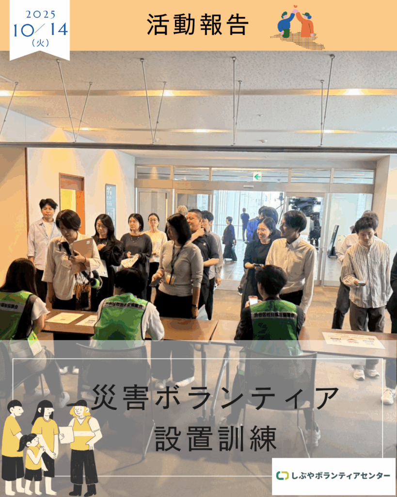 10月14日渋谷区とともに災害ボランティア設置訓練を行いました。