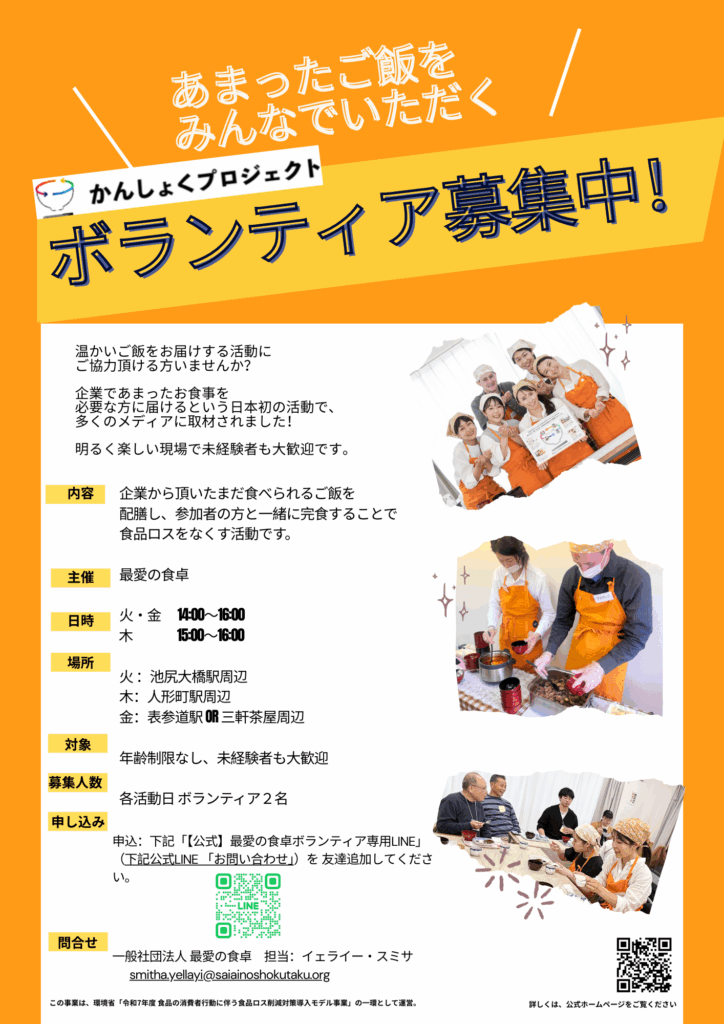 かんしょくプロジェクトは、日本初の「できあがった食事を再分配」🛻🍲する食品ロス削減プロジェクトです。