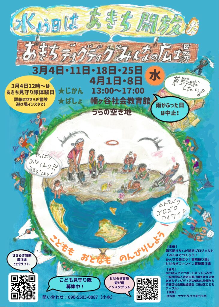 この春幡ヶ谷の空き地で、3〜4月に計6日間の外遊びイベント『あきちディグディグみんなの広場』を開催!