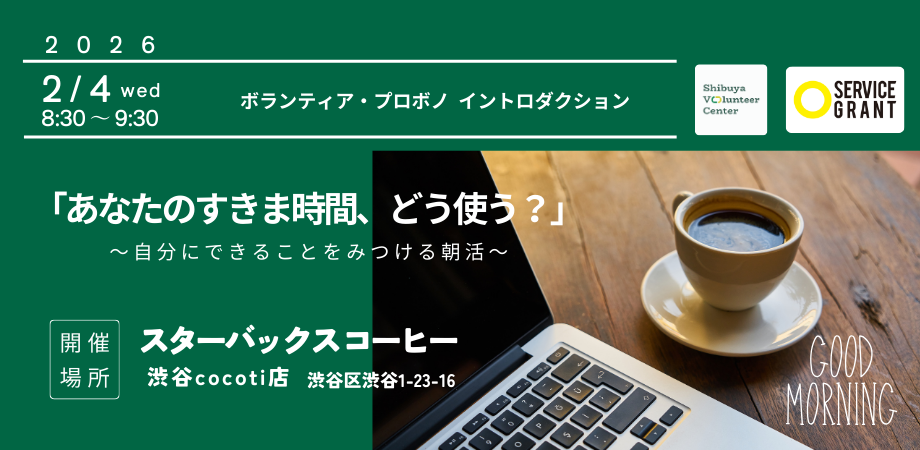 2月4日(水)ボランティア&プロボノについて語り合う対話型の朝活ボランティア・プロボノ イントロダクションを、スターバックス コーヒー 渋谷cocoti店にご協力いただき開催しました。
