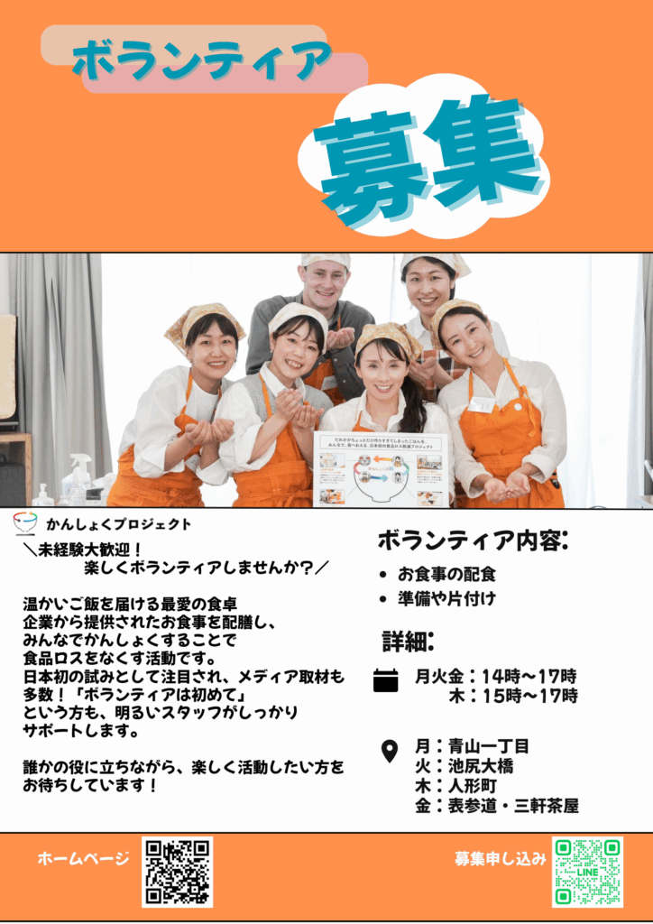 かんしょくプロジェクトは、日本初の「できあがった食事を再分配」🛻🍲する食品ロス削減プロジェクトです。